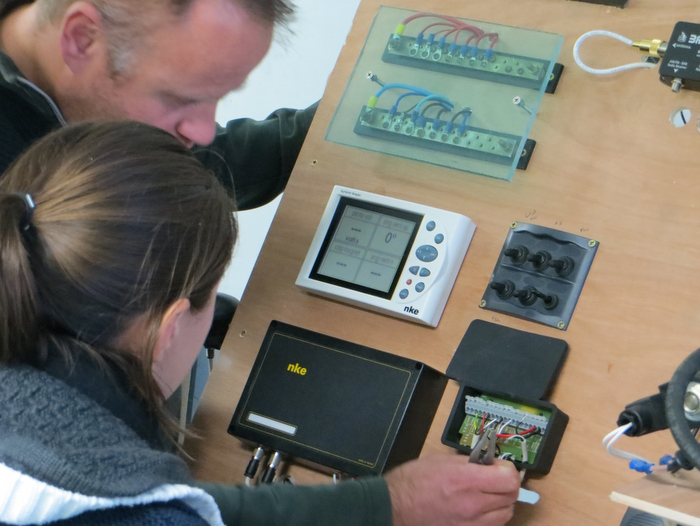 Les stagiaires 2e année du CQP Maintenance nautique suivent, cette semaine, un module dédié à l'électricité et l'électronique de bord. A leur disposition, les instruments fournis dans le cadre d'un partenariat entre l'INB et nke Marine Electronics.