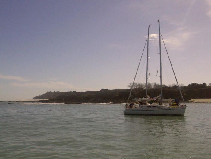 Les alternants pour leur part profitent d'un grand soleil en baie de Port la Forêt, entre les Glénan et Concarneau, pour se perfectionner aux manoeuvres et à la régate sur les First Class 8.