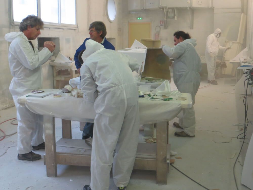 Les besoins étant variés parmi les stagiaires, deux groupes ont été constitués. Le premier s'est formé aux techniques de base du composite, de la stratification à la finition gel coat. Le deuxième groupe, qui pratique et maîtrise déjà ces techniques, a pu se pencher plus précisément sur la construction et la réparation en infusion.