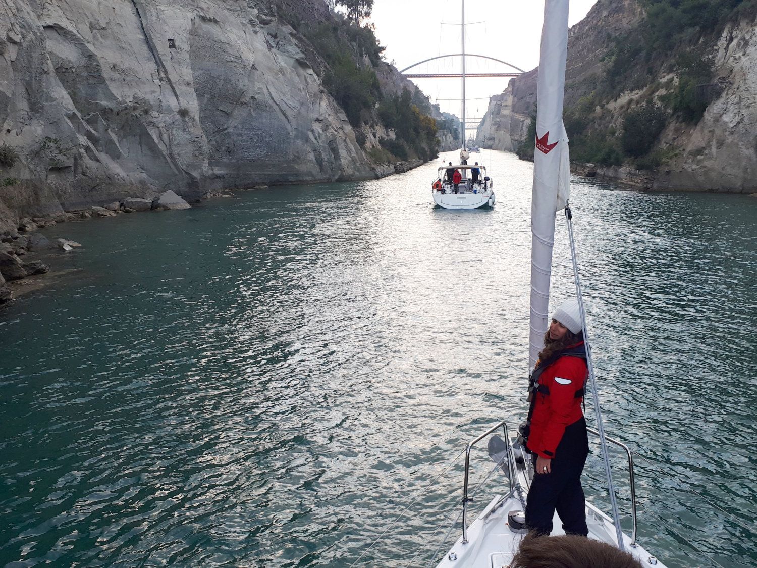 Le reste du groupe était réparti sur 4 bateaux confiés par le partenaire Dream Yacht Charter. Partis de Port Napoléon, ils ont rejoint, en Grèce, quelques anciens de l'INB aujourd'hui professionnels chez Dream Yacht et qui les attendaient là-bas. L'occasion d'emprunter le célèbre canal de Corinthe.