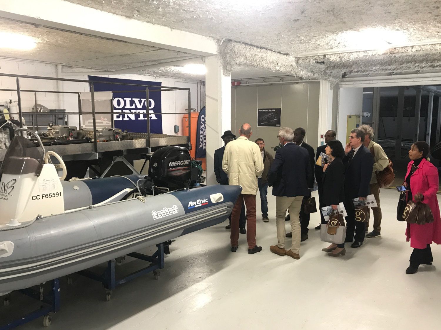 Accueills à l'INB par Laurent Winisky, directeur, et Xavier Pagnier, président, les hôtes sénégalais ont échangé sur les spécificités des marchés nautiques en France et au Sénégal, sur les opportunités d'emploi et sur l'offre de formation professionnelle. Olivier Louédec faisait partie de la délégation de la Chambre de métier. Son expertise dans la construction nautique l'a récemment ammené à intervenir sur des chantiers en Afrique. Et avec ses fonctions d'encadrant de formation à l'INB, il était l'interlocuteur tout trouvé pour assurer le lien entre l'INB et l'organisme sénégalais.