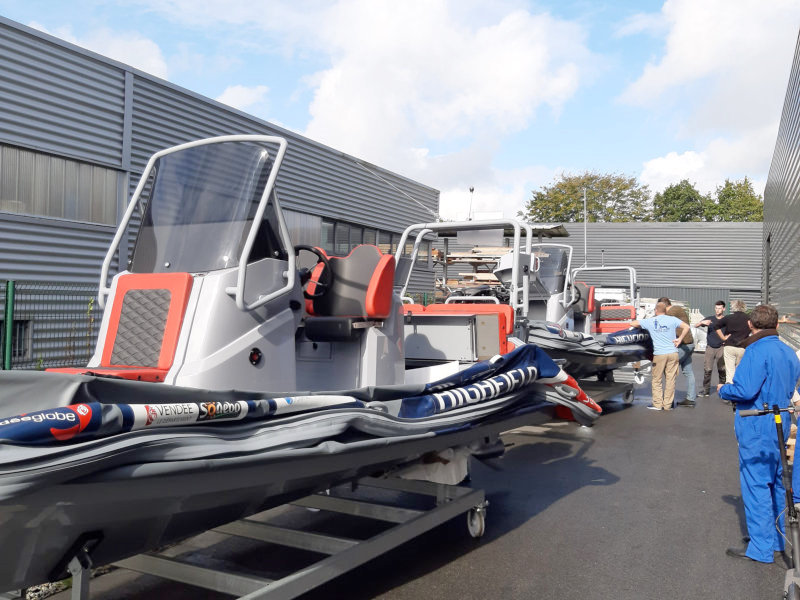 La promotion des Techni-co de Concarneau en reconversion est à Brest. Dans les locaux de YB Marine, ils assurent le montage des moteurs des semi-rigides qui accompagneront en novembre le départ du Vendée Globe.
